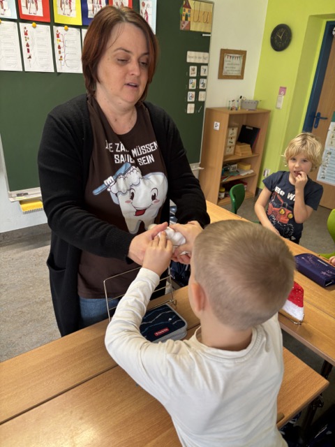 Gemeinsam mit Martina entdeckten wir auf spielerische Art und Weise den Aufbau und die Aufgaben unserer Zähne.