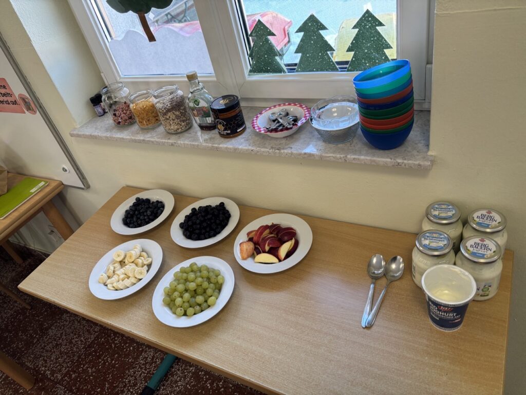 Als Abschluss gabs eine dem Thema angepassten gesunde Jause mit Joghurt, Müsli und Obst. ![]()
